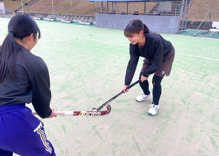 私はホッケーを通して自分を変えることの難しさを感じました。最初は楽しかったのですが、できない部分が気になり自信を失いました。そこで、上手くなくても自分にできる「声を出すこと」を大切にし、チームを支えました。キャプテンとして悩むこともありましたが、「自分の存在意義」をつくろうと行動を重ね、少しずつ自信が芽生えました。諦めずに向き合い続けることの大切さを学び、今は最後の大会に向けて全力で練習に励んでいます。